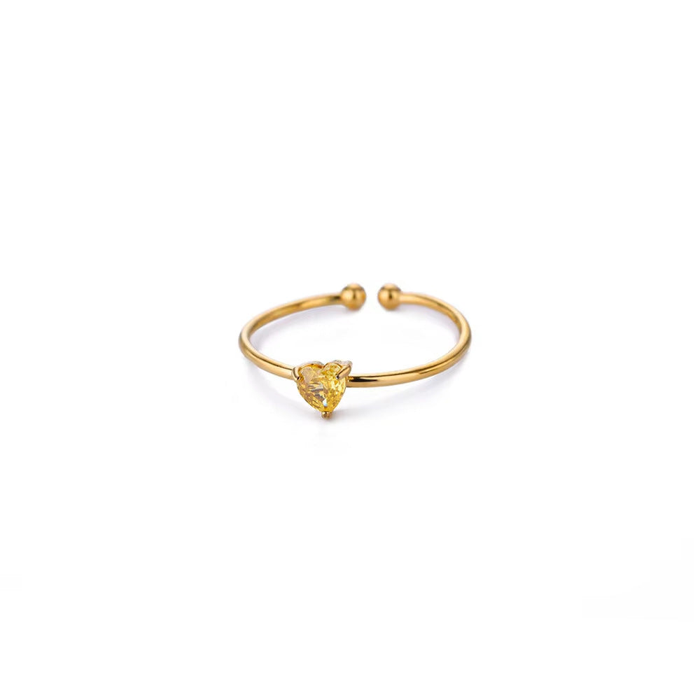 Birthstone Ring Titanium Steel Plated 18K Open Adjustable Gold