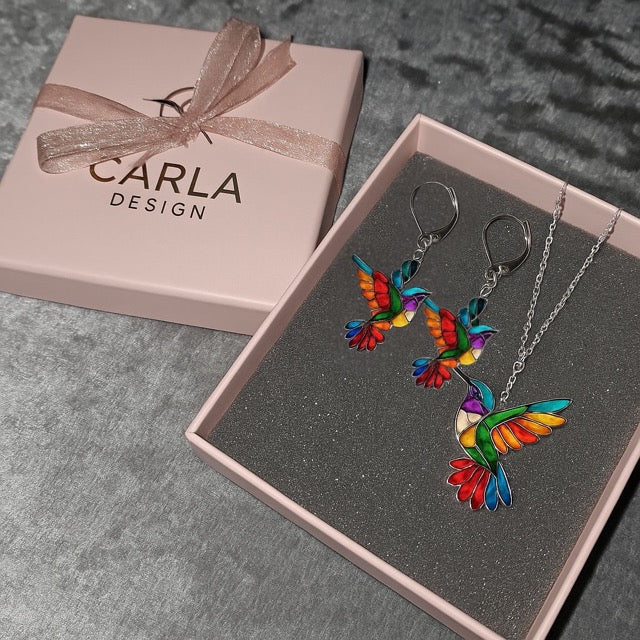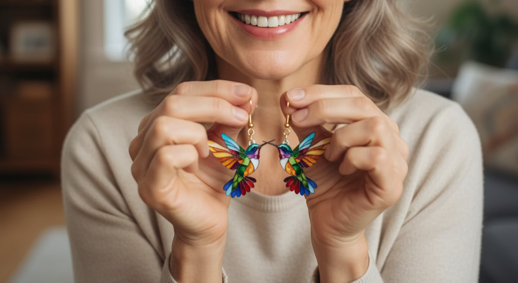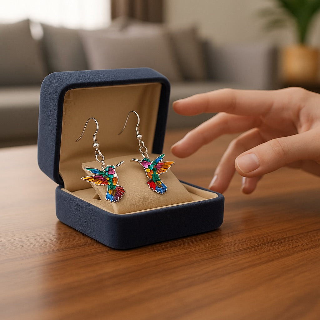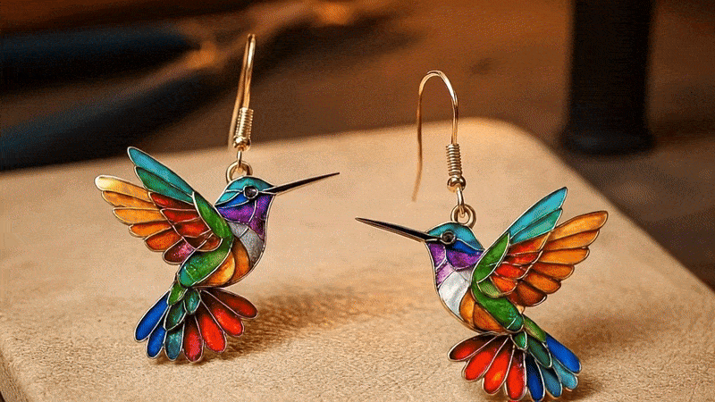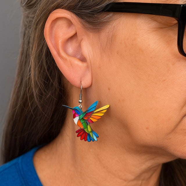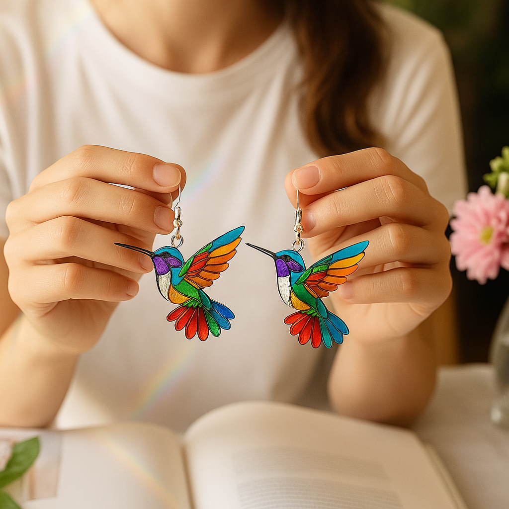 The vibrant rainbow colors, the delicate wing details, the way the light dances across the acrylic — honestly, everyone who sees the Carla’s Jewelry Hummingbird Earrings falls in love with them instantly.